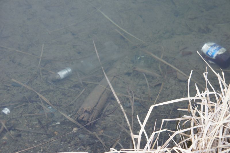 Всю акваторию не обследовал, но в самом депрессивном углу озера( в начале ) его хватает. А в общем-то предыдущие попытки облагородить сей уголок оказались не совсем напрасными-мусор навален, в основном, локальными кучами. Но куч много!