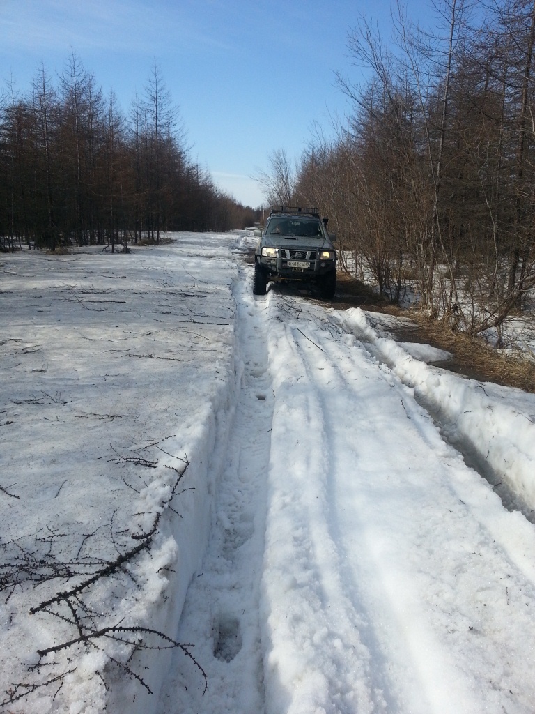 Возвращаясь, завернули на дорогу к Соленому. По дороге мокрый снежок, но пробиваемый.