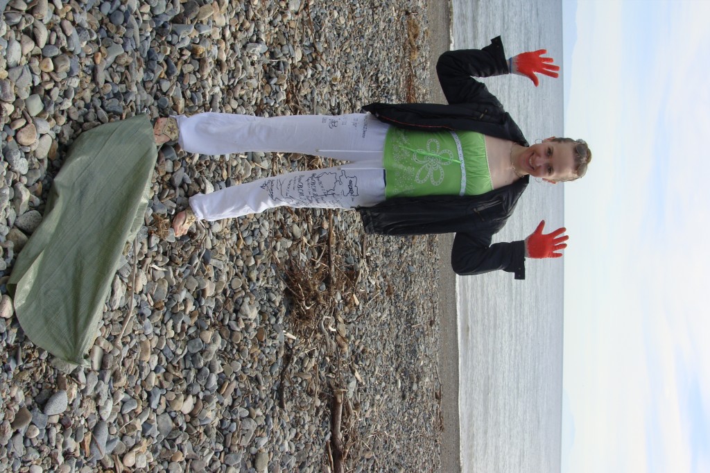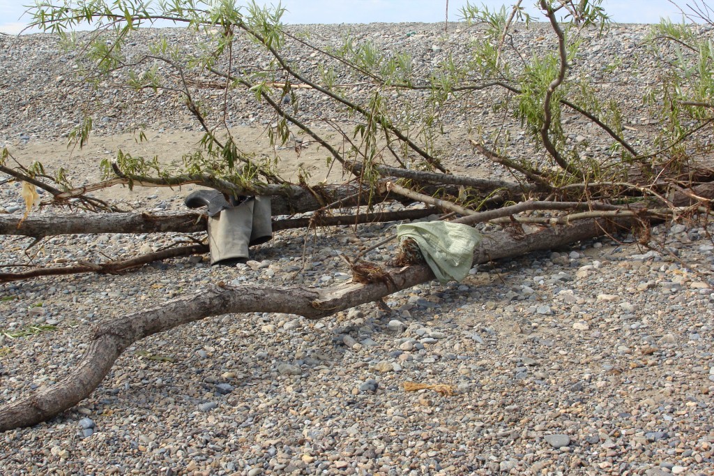 была на мероприятии. Хоть и сперва не планировала принимать участие в уборке, думала поваляться как тюлень. Но передумала. Нас отвезли местные ольские ребята на левый берег Олы, на лицензионный участок "Колымарыбпром". Очень приветливо нас встретила хозяйка - Сабина Стрельченко. Даже куртку дала. Там было более ветренно, чем на популярном пляже, где в основном и гадят. Нас было шестеро, мы отправились вдоль берега с мешками - собирать мусор и пакетами - предлагать отдыхающим и рыбакам убрать за собой мусор (в случае если у них не было своих пакетов), а также мусор, который вокруг них.