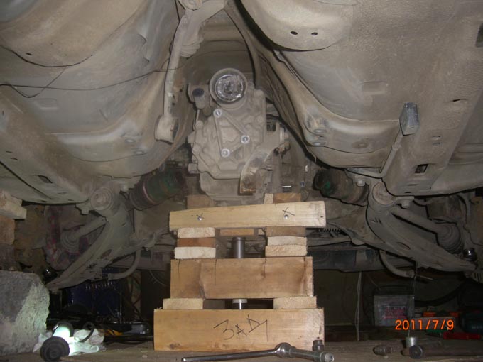 Вот сцепление собрался поменять на АТМО форике, ну какбы изначально хотел движку сдёрнуть, есть талька на потолке…, както с верху оно вроде меньше делов, но поскольку надо менять пыльники внутр. на приводах, и выпускной тракт новый у меня пришёл, то начинаю разбирать: