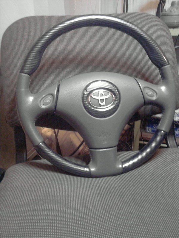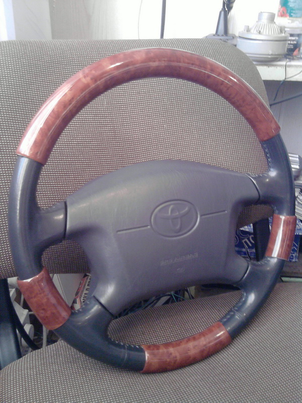 дерево на руле обтянул плёнкой, кнопки покрашу или оставлю такими.