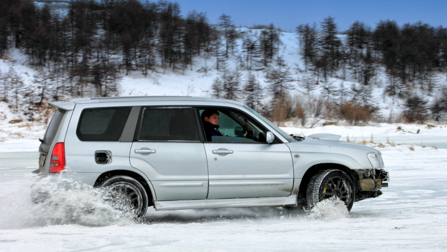 полный привод на льду - это боковое скольжение, а монопривод - это занос или снос. И мне на полном приводе не удавалось сильно уж быстрее них проезжать повороты.