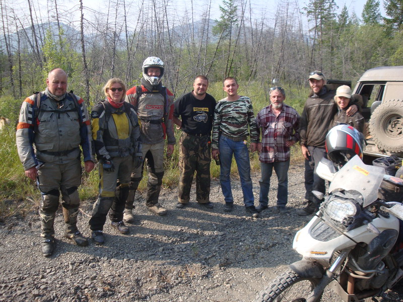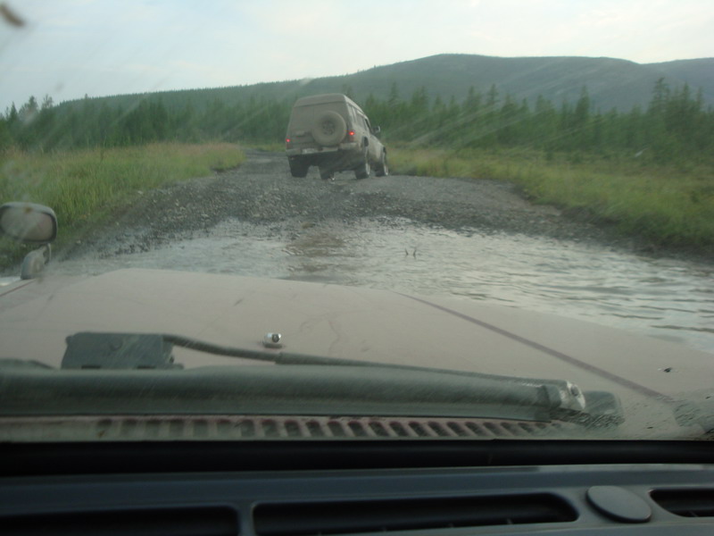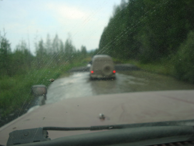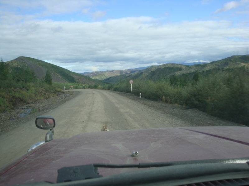 Ну а дальше был первый праздничный ужин сон и с утра кто то,попив чая, а кто то, похмелившисьвыдвинулись дальше к нашей цели. Дорожники молодцы, дорогу сделали хорошую…нопыльная шопипец...Наша скорость была около 80 км/ч, но попутные фуры тормозилиее до 40-50, потому что в пыльной мглеобогнать их не было никакой возможности, так не спеша добрались до Колымы. Тампередохнули и двинули дальше.