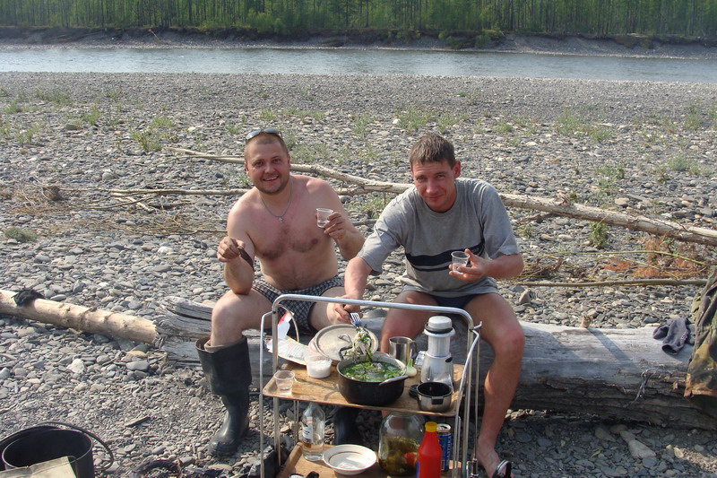 Место достаточно оживленное, живет абориген Андрюха, останавливаютсястаратели, и рядом с нами встали трое Сусуманских мужиков на Урале.