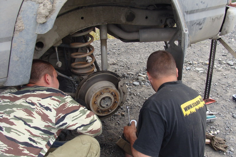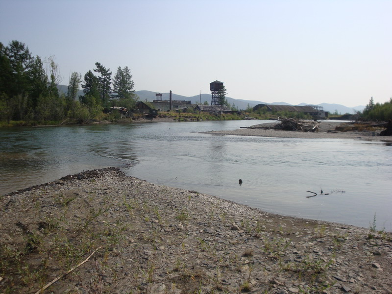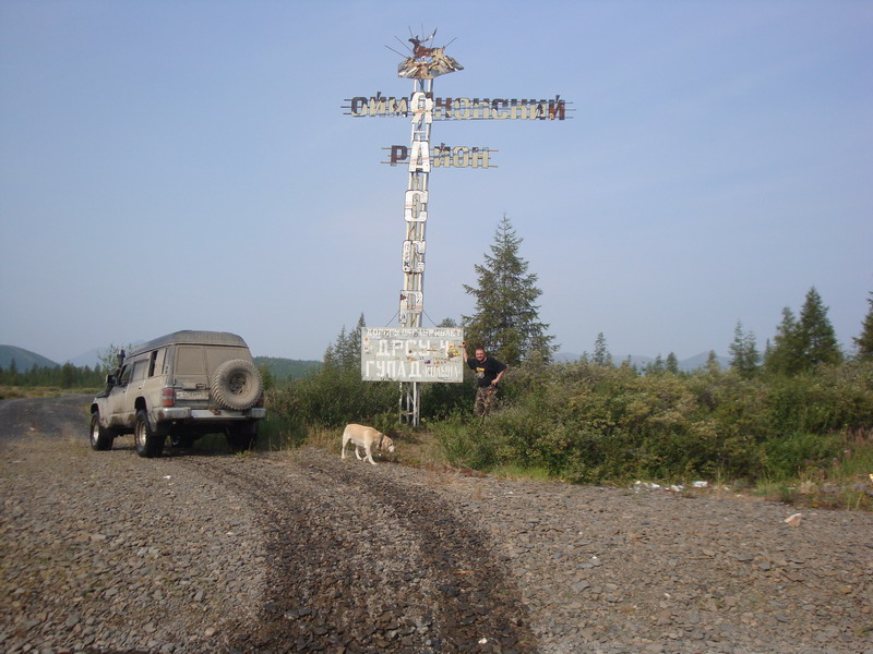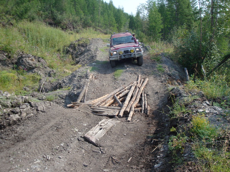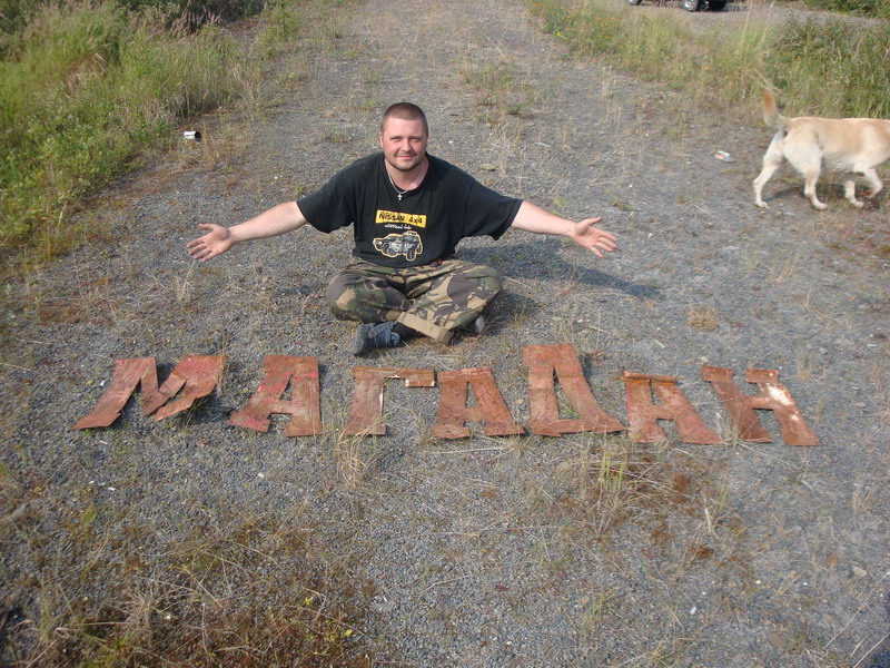 жара и пыль становились только хуже. На Бурхалинскомперевале Турбосафарь закипел, жара стояла за 30. Остановились около сворота на Мяунджу, от Магадана отошлина 700 км, федералка уходит прямо, а намсворачивать налево от цивилизации на Старую дорогу, вдали белел многоэтажкамиброшенный Кадыкчан. Перекусили тушенкой и двинули дальше, было уже около 9часов, а ночевать по плану должны встать у метеостанции Эмтегей, до которойбыло еще больше 30 км по Старой трассе.