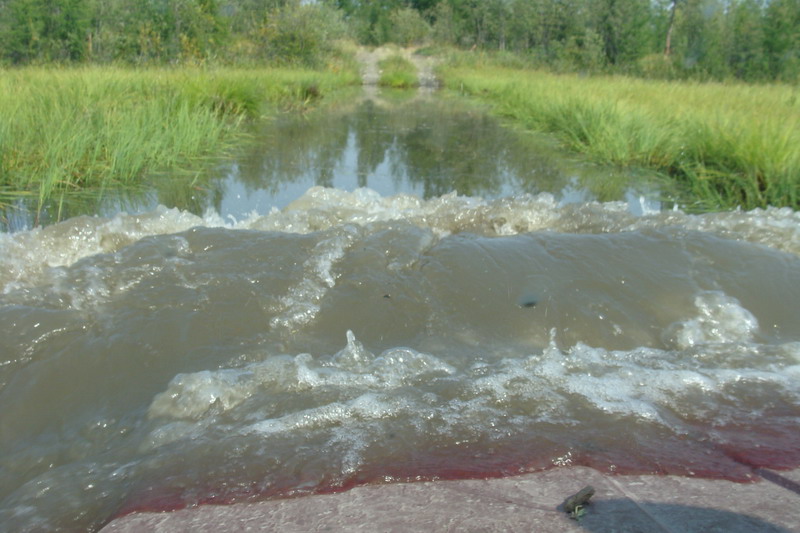 Самое опасное было напороться в луже в бревно, так чтопроходили их максимально медленно.