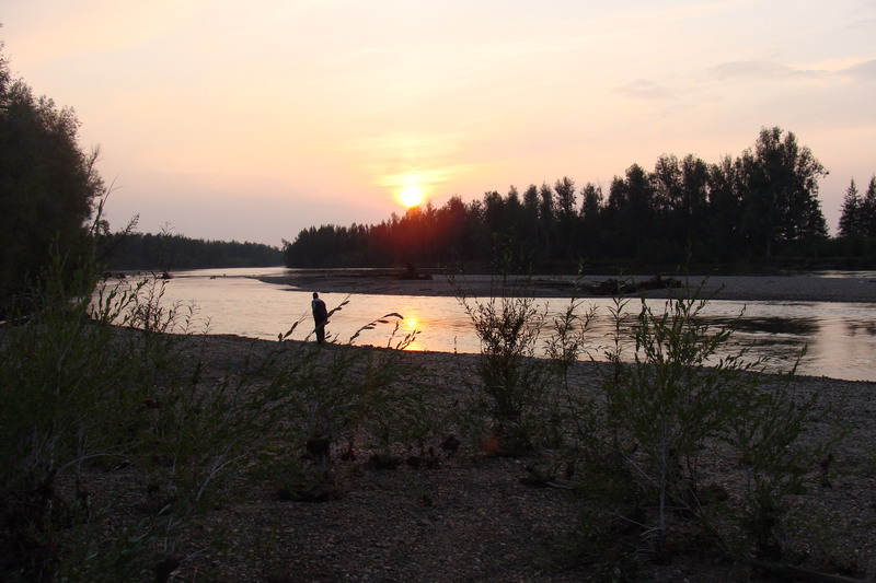 Через полтора часа докатились до метеостанции Эмтегей, ирасположились на косе. На этом месте решили провести 2 ночевки.