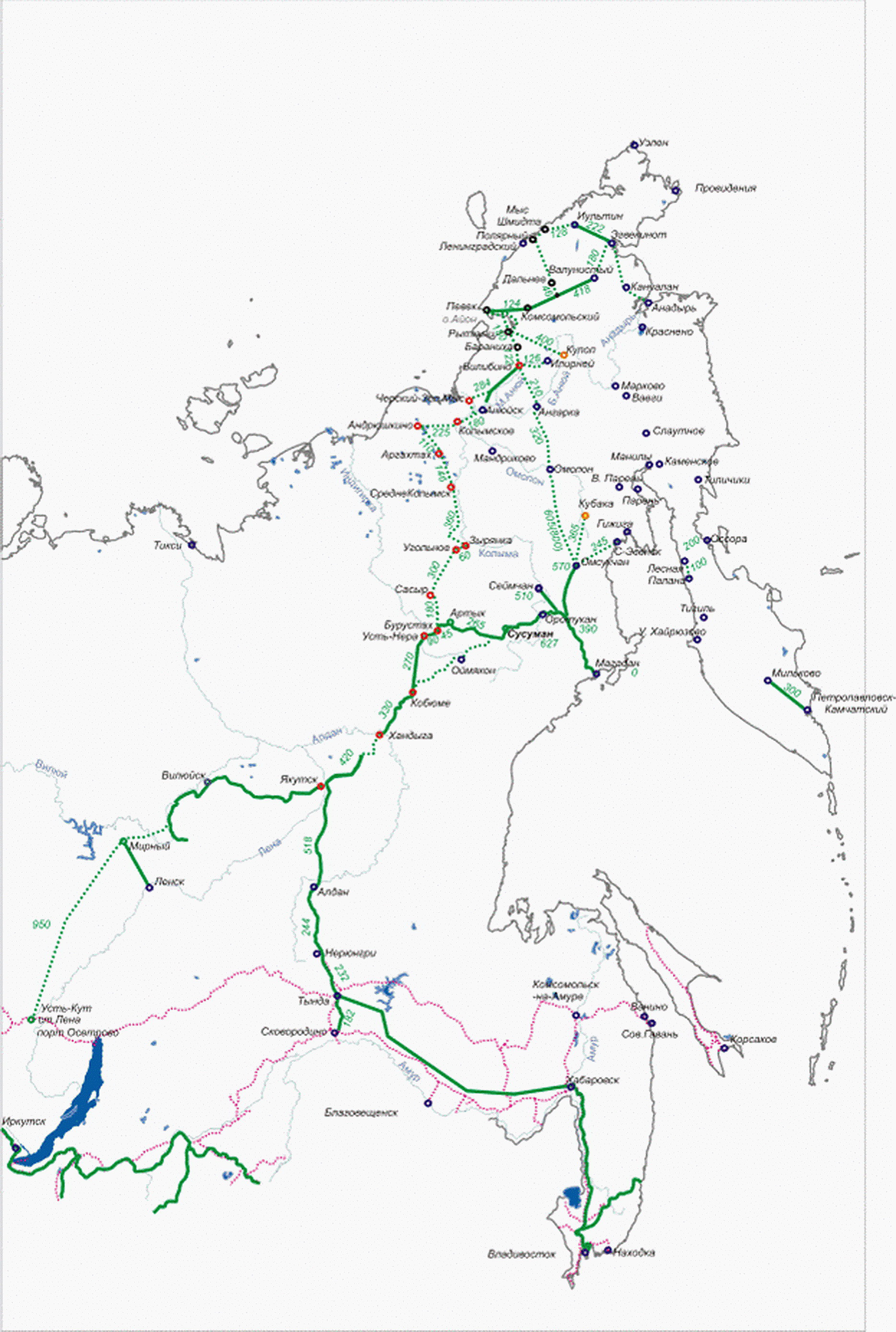 Спросил у отца, они ехали с Якутска-в магадан-с магадана через перевал Жаркий выехали на зимник в билибино-с билибино на певек-и с певека он сказал один зимник на анадырь. Между билибином и певеком есть какой то поселок,я забыл честно как название но папа сказал там никуда не съедите!!!Так что как вот так!!!если что я прилечу в магадан 8 сентября и точно поговорю с отцом,а то дорого с материка звонить!!!