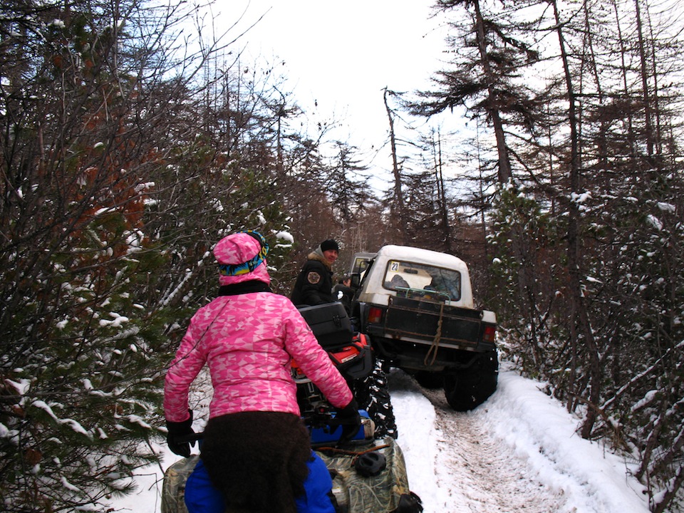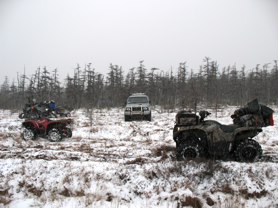Я же чинно тошнил по кочкам и болотине,единственное что я объезжал это те места где сидели в болоте жипы,потому что когда жип вылазиет оттуда,образуется жуткая яма наполненая водой и нырять туда не было никакого желания,да и зацепить лебёдку не за что,кругом болото без деревьев,а квадрик друга максимум притяну к себе