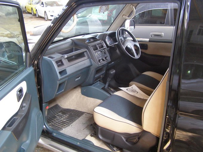 2. Долго мучили сомнения. Что за машина, тем более джип, может быть с 660 кубами под капотом. Объем более характерен для среднего мотоцикла! С недоверием смотрел на отзывы счастливых владельцев о хорошей динамике и похвальной проходимости. И всё-таки решился на эксперимент. Машину (благо, сам их вожу) приобретал на аукционе. Времени для выбора практически не было, нужно было уезжать во Владивосток, да и цены установились в августе далеко не зимние. Но решено – так решено. С третьей попытки очаровал Миника 2000 года в исполнении Duke (заводской тюнинг, с использованием элементов дизайнерской фирмы Duke) категории «R» и пробегом 92000 км. На момент покупки машина имела номерные знаки и сякен (shaken) до 03.07 С небольшими задержками (в конце августа штормило) машина прибыла во Владивосток.