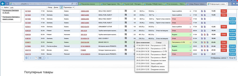Если бы всё было так легко ... Вот скриншот, где раскрыта история заказа задних тормозных дисков -