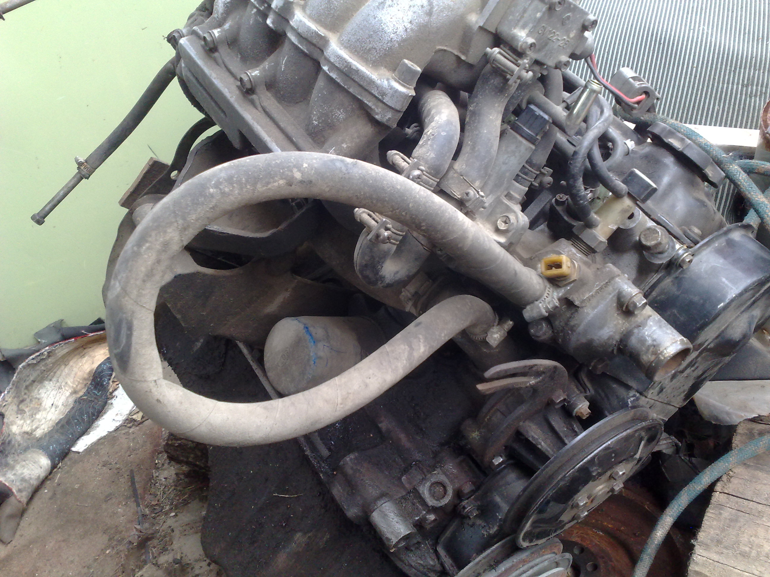 ...нет, печка у меня тоже в задней части блока подключена. Два патрубка, заткнутые болтами, это подогрев на газовый редуктор был, его в разрыв подогрева заслонки вкорячили. В карбюраторном варианте у меня тоже датчик возле термостата стоит, а в патрубке из блока сосков нет, были на другом моторе, но как я понял, это на охлаждение турбины...А здесь турбины не было...Фотки бы найти такого мотора...