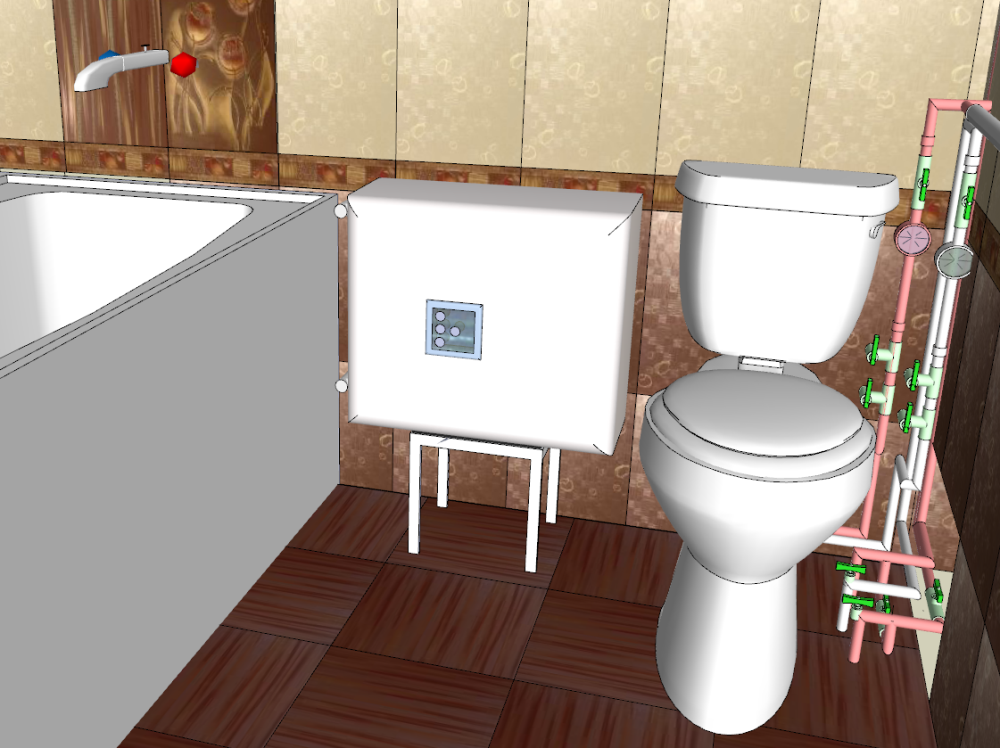 Причем я его так и не установила, просто в нужное время вынимала из коробки, ставила на табуретку в ванной и подключала шланги.