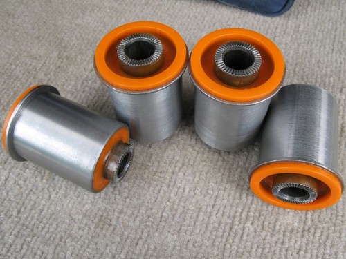 Нестандартные задачи в той или иной степени нас покидать и не думали. Например, сайлент-блоки нижних передних рычагов в природе новыми не существуют. Точнее, они существуют, но только вместе с самим рычагом и цена этому удовольствию что-то под $300. Но я себе такими цифрами голову даже не засорял, т.к. платить много денег — это не наш метод. В итоге, после поисков и расспросов было найдено подходящее решение в лице ООО «Полиуретан». Они мне изготовили эти детали из полиуретана. Говорят, этот прекраснейший материал не только красиво выглядит, но и еще гораздо долговечнее резины!