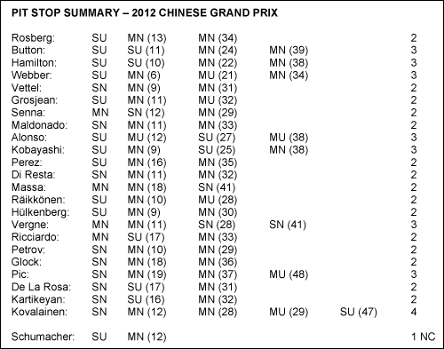 NC - не классифицирован. В последней колонке указано общее число пит-стопов