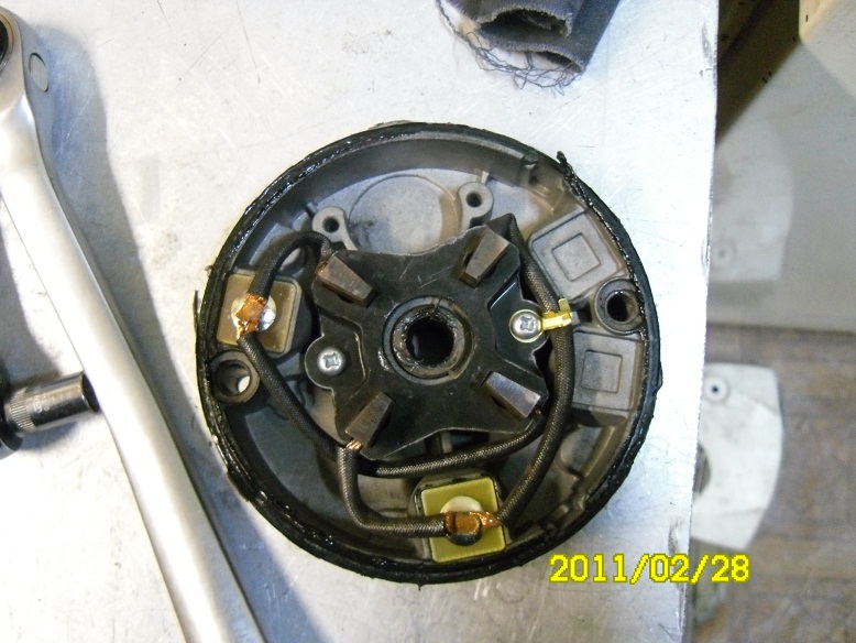 когда разберешь, посмотри крепление щеточной обоймы. На моей было кое как приклепано трубочными заклепками и во время разборки одна щетка сразу отвалилась. Осмотр показал что еще три заклепки подорваны.Лучше сразу все заклепки высверлить и заменить болтиками с гаечками ,например из детского конструктора и после затяжки расклепать чтобы не раскрутилось.У меня правда таких болтиков не нашлось и пришлось брать метчик и лерку на 2,5, бронзовую проволоку и пластинку и нарезать шпильки и гайки. Мы ж легких путей не ищем .