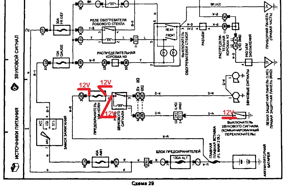 Нажмите для просмотра прикрепленного файлаНа момент проверки тестером: на предохранителе, на реле и на кнопке включения сигнала имеется 12V (точнее 12,85V). Масса на кнопке имеется, прозвонил тестером. При нажатии на кнопку включения сигнала реле может сработать пару раз (а может и нет), а потом не срабатывает. Реле я вскрывал, удлинял провода на кнопку включения сигнала, что бы можно было стоять рядом с реле и видеть, срабатывает оно или нет. Когда реле не срабатывало, делал замеры тестером по тем же местам, результат тот же, везде имеется напряжение. Если на реле самому нажать на пластинку (замкнуть контакты), то сигнал есть....