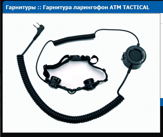 Гарнитура ларингофон ATM TACTICAL Ларингофон с кнопкой РТТ и акустическим наушником.