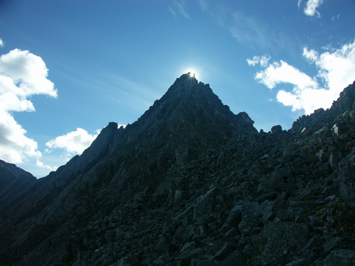 По реке Сахынья 15 км до одноименного озера, на левом берегу которого имеется барак. В верховье реки, на высоте более 1200 м. еще 2 озера. Каждое из них по-своему красиво. Выше озера Верхнее в р. Сахынья впадают короткие ручьи, вытекающие из цирков. Радиальный выход к пику Черге составляет 3 км. Обширный цирк окружен скальными стенами. За крутым подъемом в цирк открывается скалистый пик, похожий на кремль. Путь к подножию вершины осложнен россыпями огромных валунов. В верховьях цирка невольно перехватывает дыхание от неповторимой панорамы - восемь гигантских башен вонзаются в небо как острые мечи. Штурмовой лагерь разбивают на самой высокой морене. В провале между башнями видна седловина перевала Скалистый Стол (2050 м, 1Б-2А), ведущего в долину ручья Ашим. К перевалу поднимаются по крутой осыпи. Много «живых камней». Подниматься следует плотной группой. С перевала совершают восхождение на пик Черге (2 234 м, 2Б) - вторая башня к северу от седла. Мар¬шрут скальный, необходима страховка. Скалы большей частью гладкие, без трещин и потому труднопроходимые.