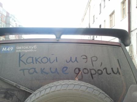 ну царапать по стеклу грязью не буду, а если будет возможность приобрести наклейку про мэра и дороги, приобрету и наклею на машину.