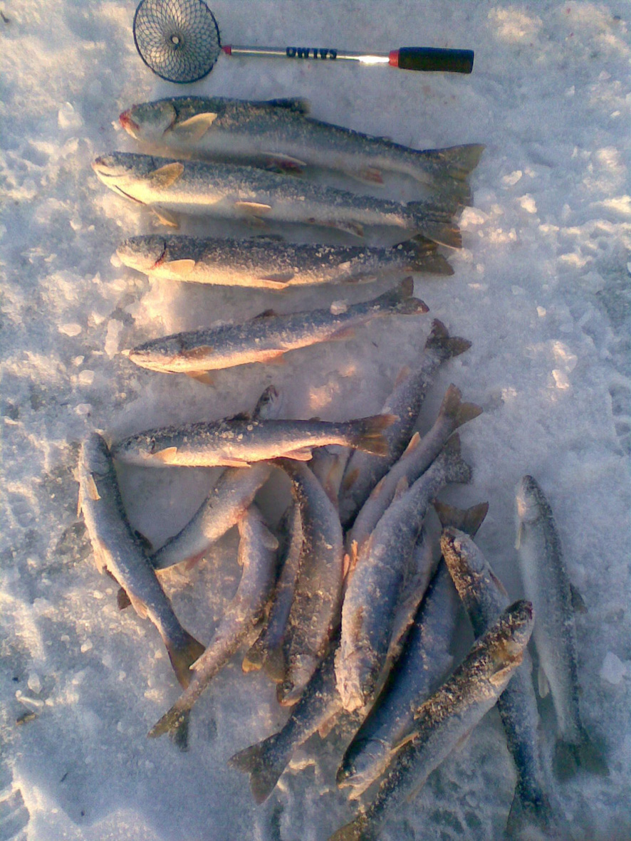 сегодня на третьем оленьем наловили два терраковских ведра мальмы, вдвоем с семилетним сыном.Наконец то парень отвел душу .Рыба хорошая, размер от селедки и крупнее. Практически всю поймали с 12 дня до 18 вечера. Белая вольфрамка и опарыш. Клюет еле заметно-помогает чувствительный кивок .