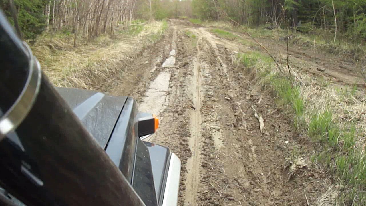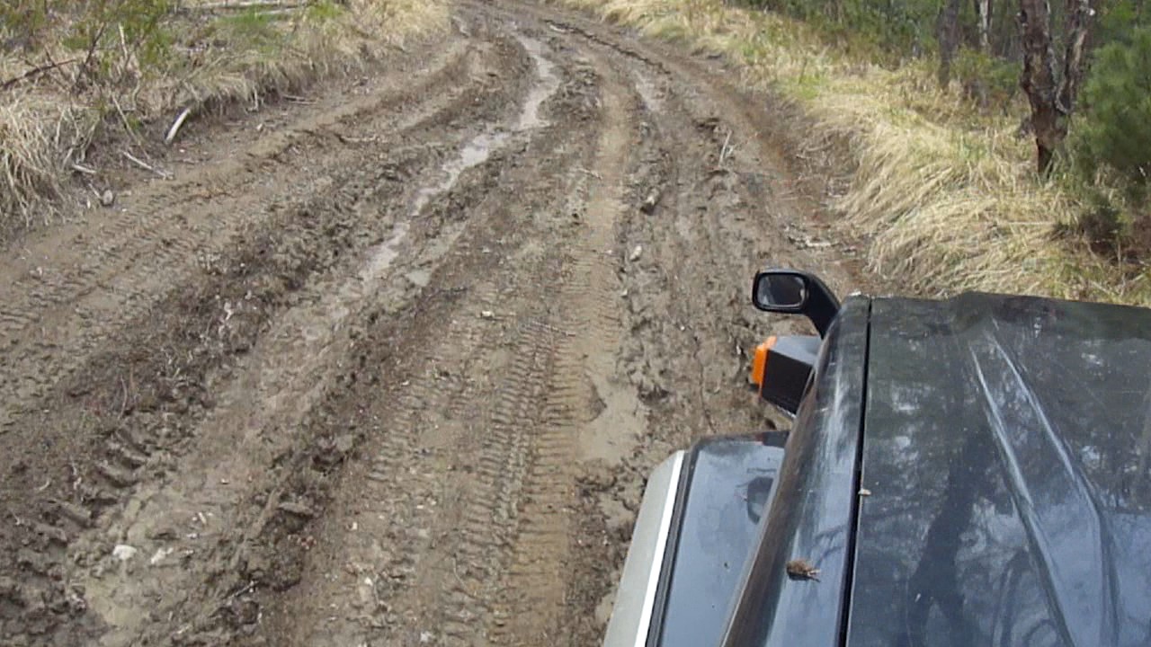 На дороге воды почти не было, но глина еще не высохла превратившись в клестер, поэтому все преимущества MT-ой резины сводились на 0 путем напрочь залипанием протектора. А так дорога очень даже ничего: