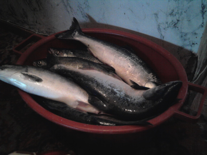 С субботы на воскресенье на Оле всего 13 штук. Рыбы мало еще, воды много и мутная. Утром полтора часа отстояли в очереди за лицензией. Оплатить выловленную рыбу, тоже нужно стоять в очереди. Платить не стал, поехал как браконьер