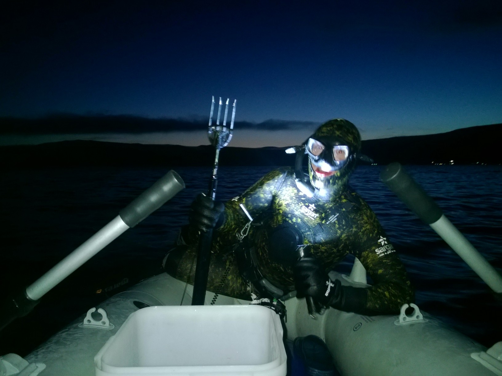 Я брал недорогой костюм мокрого типа Сарган Сталкер толщиной 9 мм, носки сухого типа толщина 9 мм, рукавицы Сарган 9 мм и перчатки толщиной 5 мм, сейчас вода около 10-12 градусов и в перчатках самое то. Маска Омер Зеро 3, сейчас новая вышла с улучшенной обтюрацией. Хорошая маска с малым подмасочным пространством. Трубки у меня две, одна с клапаном (покупал в Форварде) и вторую взял без клапана Mares Samurai с мягким загубником. Марес мне больше нравится, она и длиннее клапанной трубки. Ласты Mares Razor Pro средней жесткости (есть возможность менять лопасти), на поверхности с ними перемещаться тяжело, ласты имеют длину около 90 см и снимают довольно много энергии. Под водой дают отличную скорость и делают гребок максимально эффективным, а продольные рёбра предотвращают сваливание лопасти. Ласты следует брать на 2-3 размера больше. В моём случае, при размере ноги 42 + толщина носка в 9 мм, размер галоши 45-46. Грузовой пояс марсельез, выбирай с толстой резиной, он меньше тянется и это хорошо сказывается на рабочей нагрузке. Свинец покупать невыгодно. Для моего веса и роста мне требуется 12 кг свинца. Лучше всего груза отлить тут, свинец придётся искать самостоятельно, можно купить готовые груза в Магадане. Также тебе потребуется кукан, лучше брать с коническим замком, полой трубкой-иглой и верёвкой в силиконовой оболочке, простая веревка тоже сойдёт. Гавайка на любителя, хороша но не настолько. Также тебе потребуется фонарь, карабины, буй, катушка с линем, D-кольца на пояс, подсумок можно сделать самостоятельно, как и крепеж для ружья. Моя стропа для ружья (на фото в постах выше) самодельная, поскольку цена заводской мне показалась крайне неразумной, впрочем на фонари она также неразумна (могу подсказать где купить оптимальный рабочий фонарь за очень разумные деньги). Обязательно купить безопасную зарядную рукоятку для ружья, запасные наконечники и гарпуны. Если есть желание посмотреть, могу показать все хахаряшки. Для заплыва тебе потребуется костюм, носки, перчатки, рукавицы, подшлемник, ласты, маска, трубка и грузовой пояс. Это минимум. Я покупал всё на Opensea.ru, поскольку сумма покупки превысила 30 000 я получил дисконтную карту на 10% скидки.