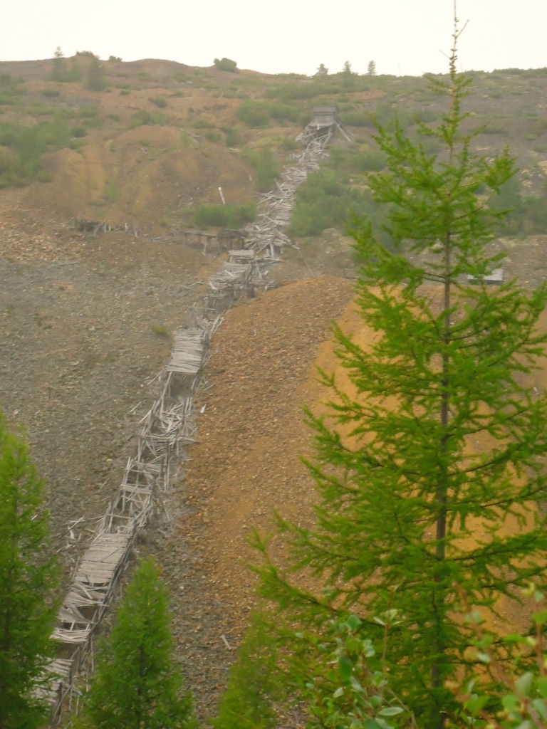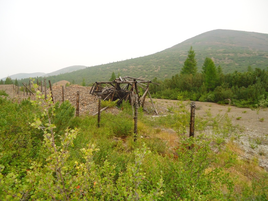 Пытаемся проехать по сопке к дальним разработкам по заросшей дороге, но упираемся в обрыв. Возвращаемся по той стороне ручья и доезжаем до когда-то жилого поселка.