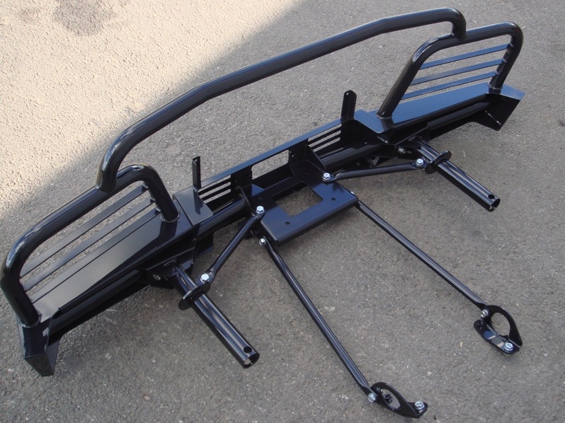 ... и ещё я больше года активно общаюсь на форумах с фореводами и нивоводами, у которых на авто установлены металлические бампера и у некоторых - лебедки ... Вопрос ими изучен очень хорошо ... И честно признаюсь, есть два варианта изготовления и установки силовых бамперов ... один - чтобы берёзки валить и при малых ДТП гнуть лонжероны ... другой - более "прогрессивный"...
